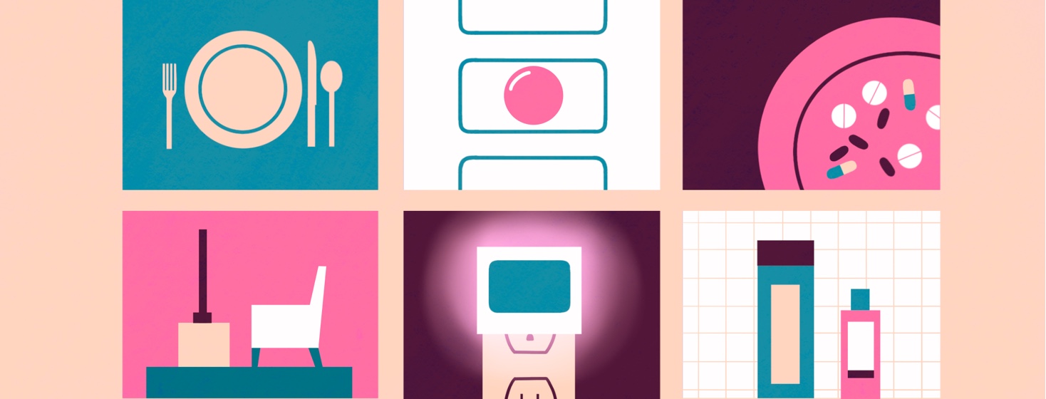It was found that a touch lamp on the bedside table was easier to turn on and off than a lamp with a switch that was hard to find. We also organized a small supply of toiletries in the bedside drawer: eye drops, tissues, paracetamol (acetaminophen), lip balm, etc. to minimize the need to get up at night.