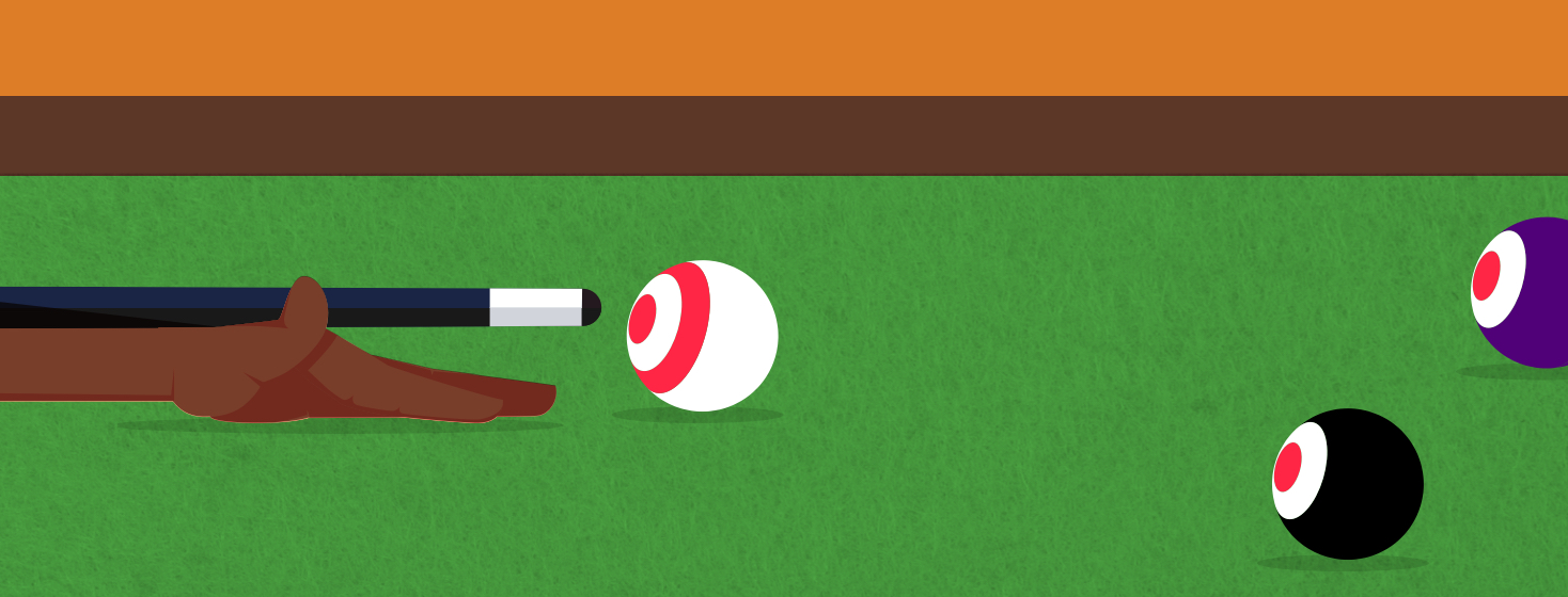 That night, my cousin let me take the first shot to break up all the balls. I knocked the first solid ball in the hole and he said, “Okay. You're solids and I'm stripes.” In preparation to take my next shot, I asked him if the ball that I am aiming for is the purple one or the 8-ball. He replied, “Oh wait. Would it be easier to just play any ball?” I respond quickly with a snarky “Don’t let me win cause I can’t see,” to which he laughed and held no mercy. We continued the game; he won and I, being the great opponent that I am, congratulated him on his victory.